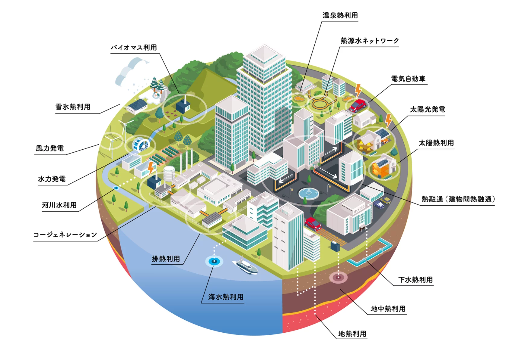 再エネ利用システムの導入、地域循環共生圏やゼロカーボン化に資するシステムの実導入を支援します。